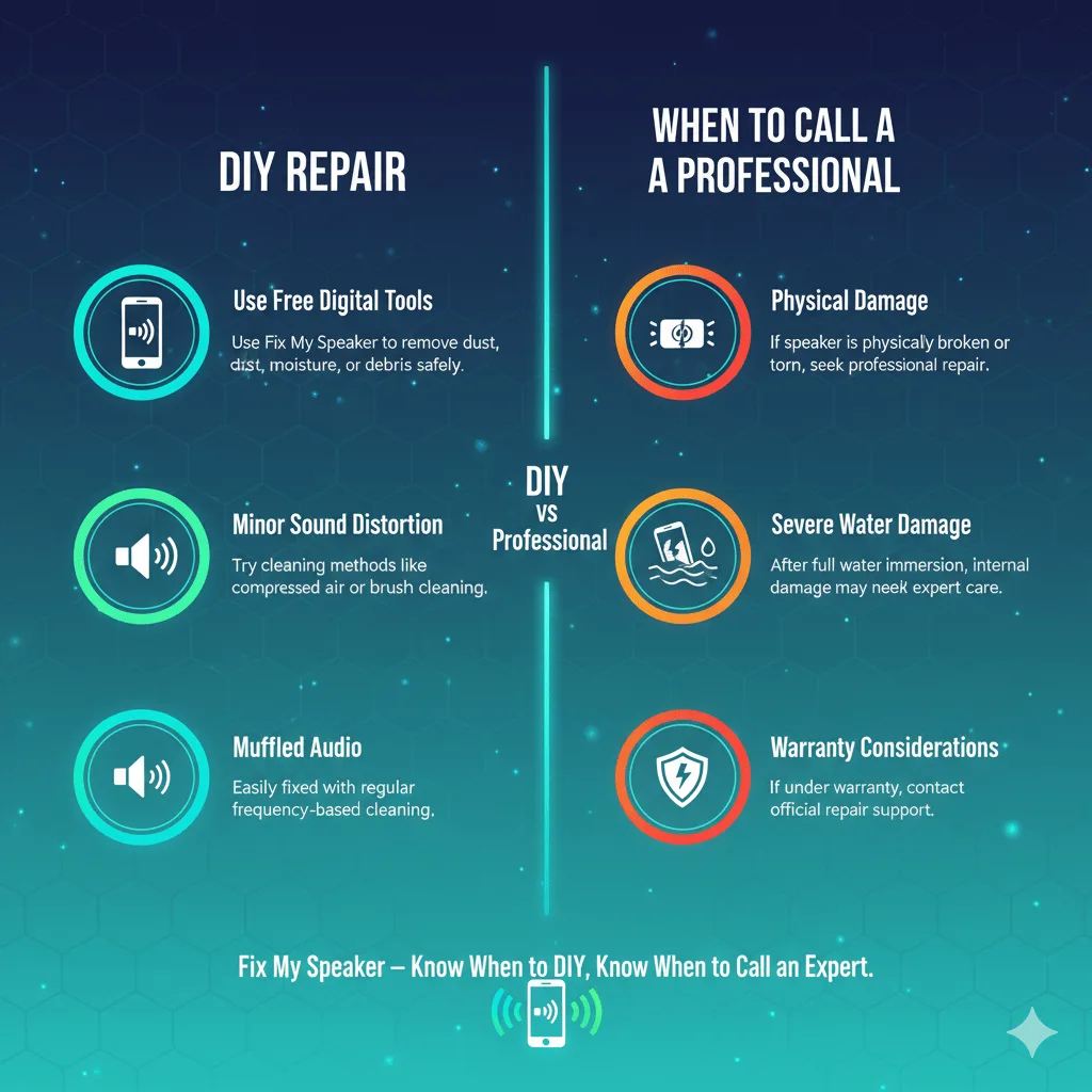These type of digital tools will help you to repair speakers at free of cost. But in some cases you need professional and when to call profession that are mentioned below: