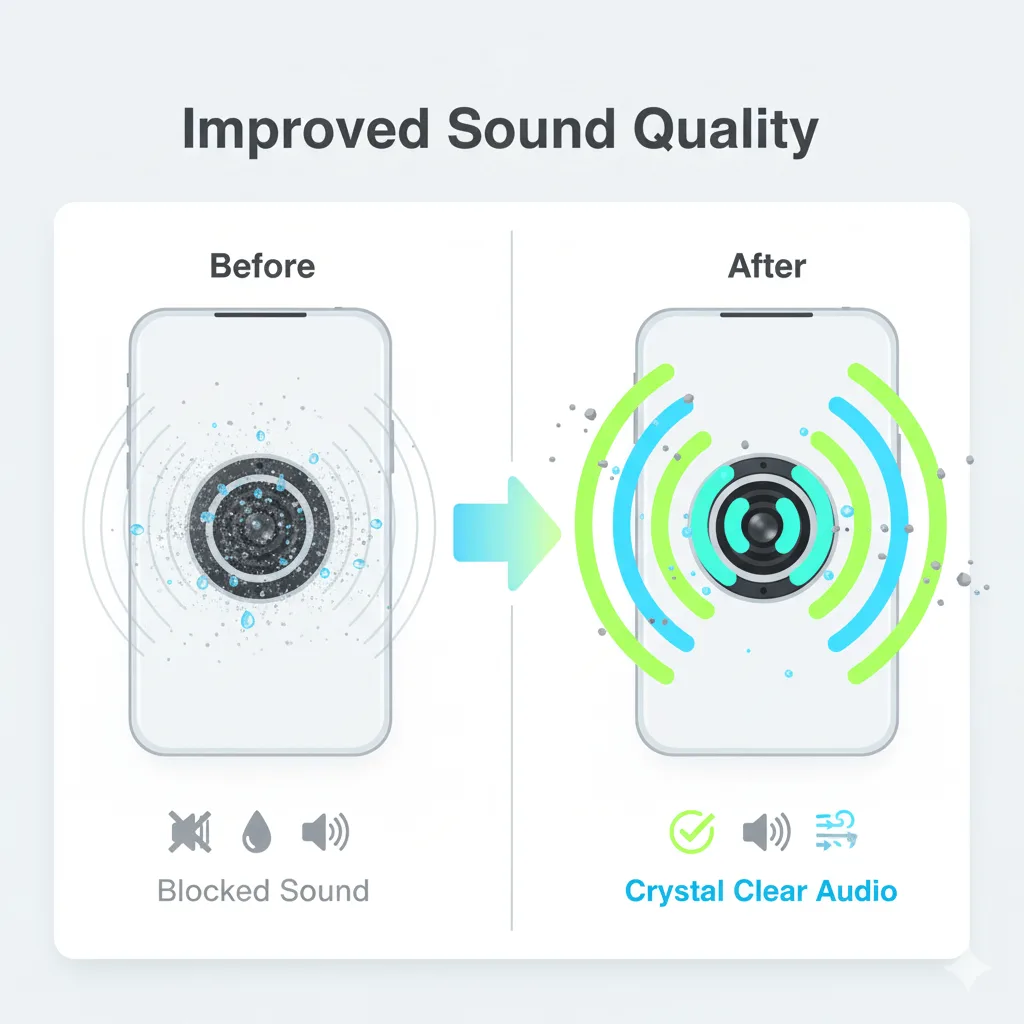 By removing dust, moisture or debris from the phone speakers, you will notice that it improves sound quality and works smoothly. It restores phone natural audio quality, making music, calls, and videos.