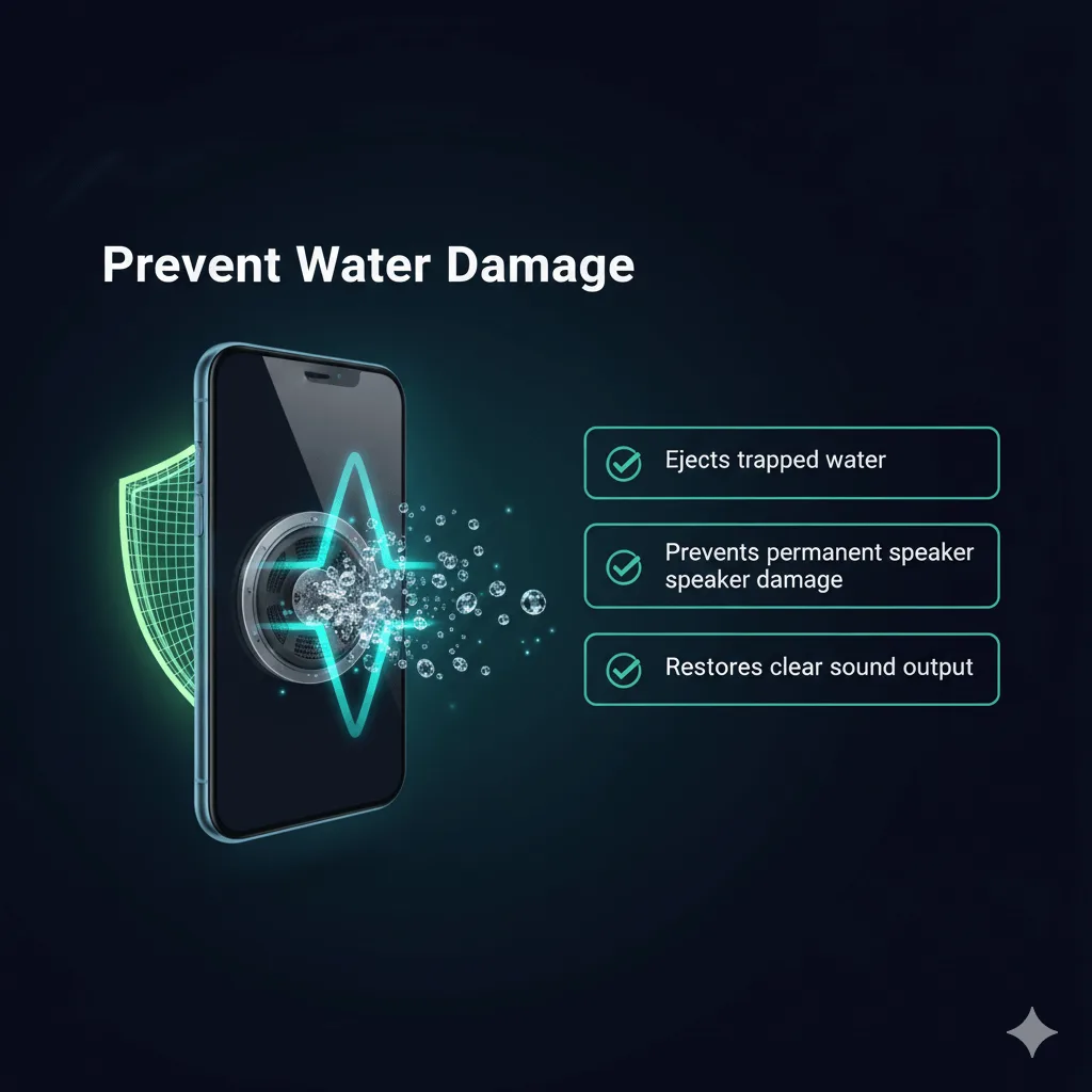 | Water Removal Technology | It focuses on dual frequency sound waves and precision vibration pulses to eject water. | These are not effective for internal water removal due to basic or single tone sound output |