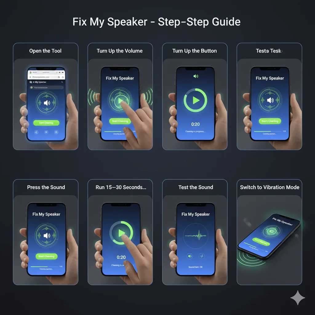 “Whether your phone is filled with dust particles or you’ve accidentally dropped it in water, our tools like Fix My Speaker Dust and Eject Water from Speaker can help you get crystal-clear sound again.”