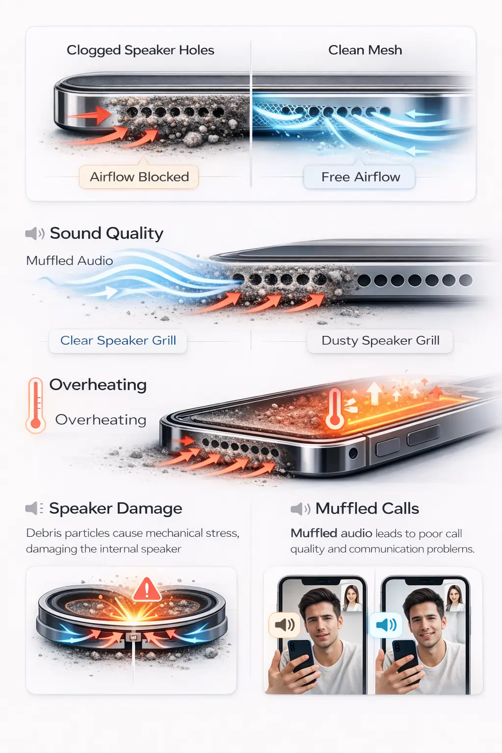 Most users clean their screens and cases but ignore the speaker mesh — which directly affects audio performance.