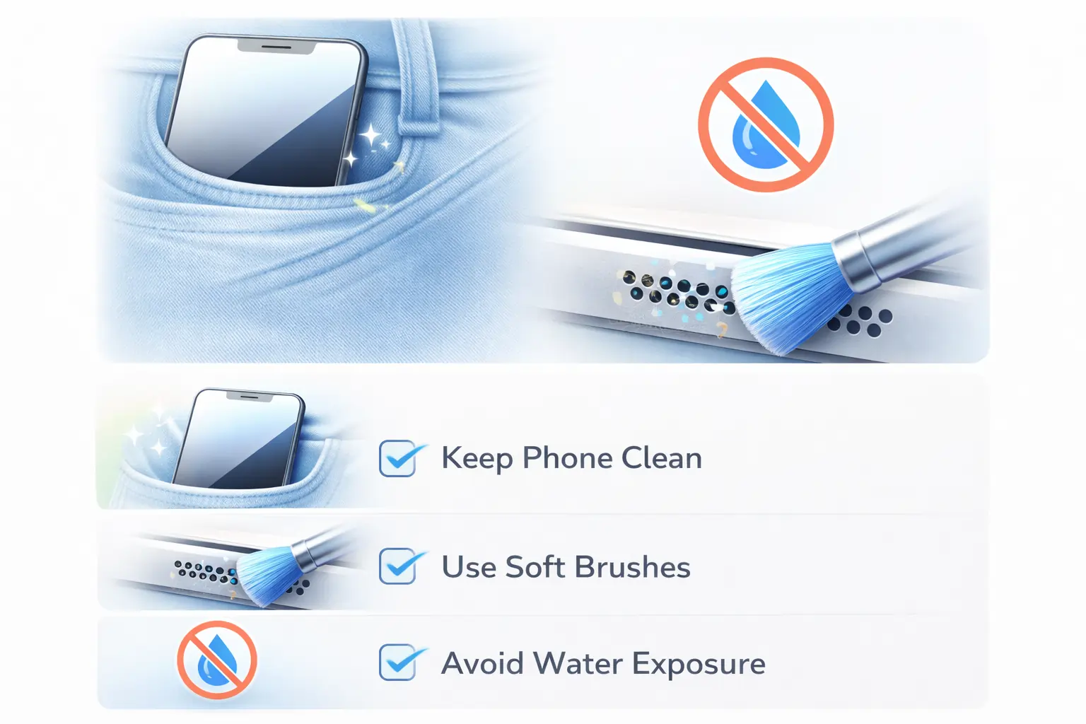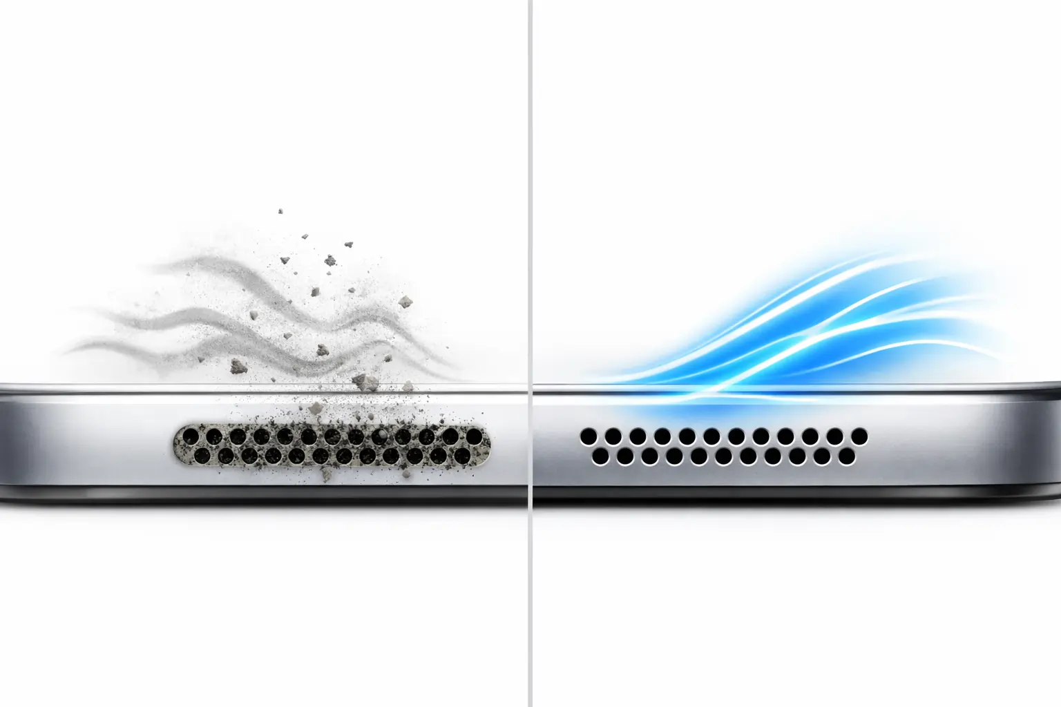 Your phone’s ear speaker sits directly against your ear during calls, making it one of the most exposed parts of the device. Sweat, pocket lint, dust, and earwax can easily block the mesh. When this happens, users often experience: