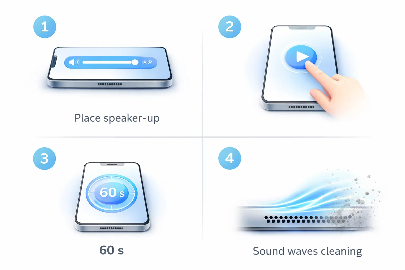 No liquids, no tools, no opening the phone. The method relies purely on acoustic movement.