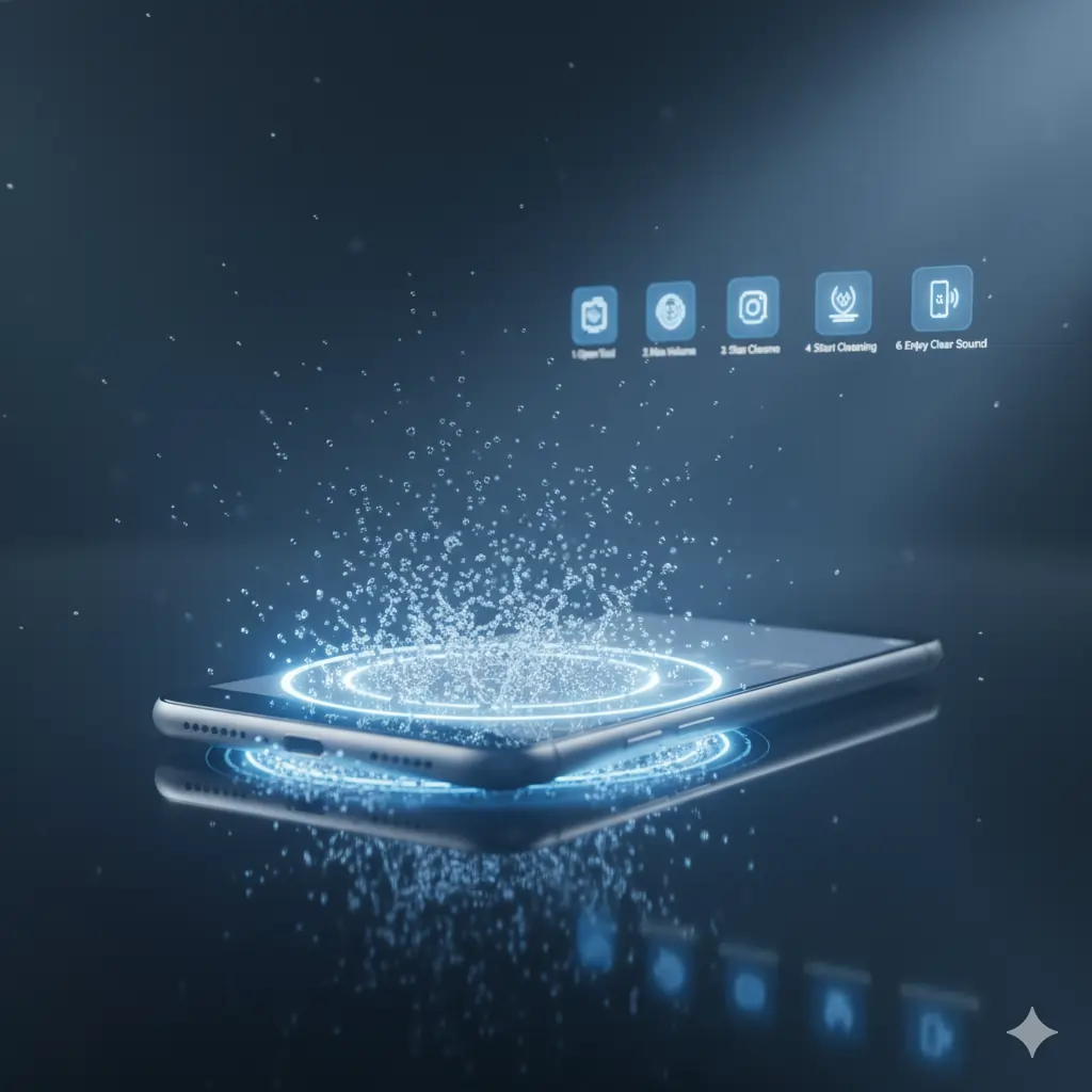 Here’s a step-by-step guide to safely remove water using our online sound-based cleaner.