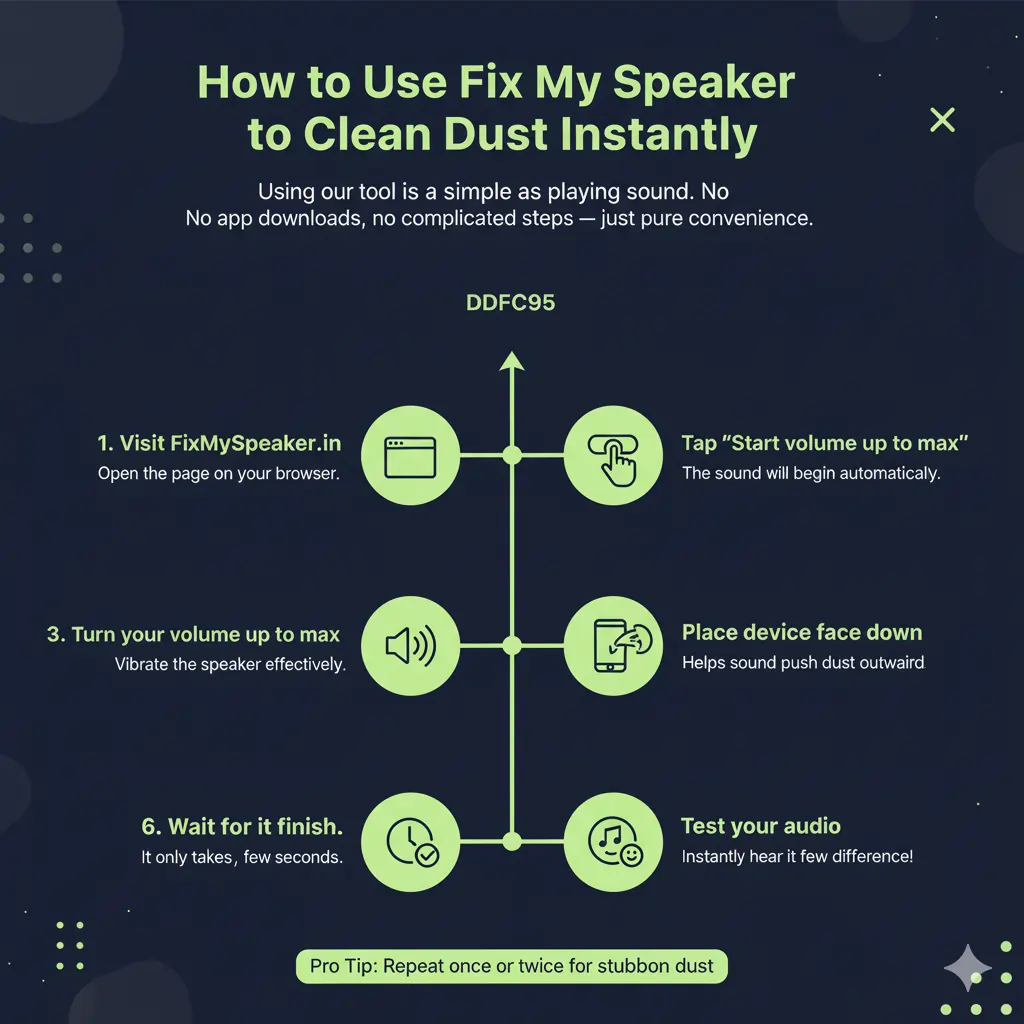 Want a direct dust-cleaning audio? Use our Speaker Dust Cleaning Sound Tool for instant results.