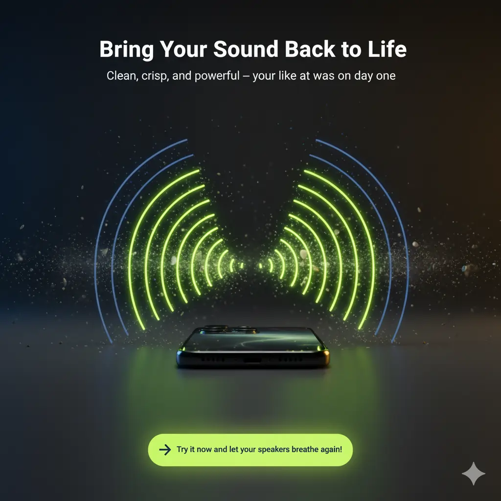 Your sound quality, optimized everywhere. Our advanced acoustic technology works flawlessly across mobile, desktop, and tablet screens to safely remove dust and instantly restore your speaker’s original clarity.