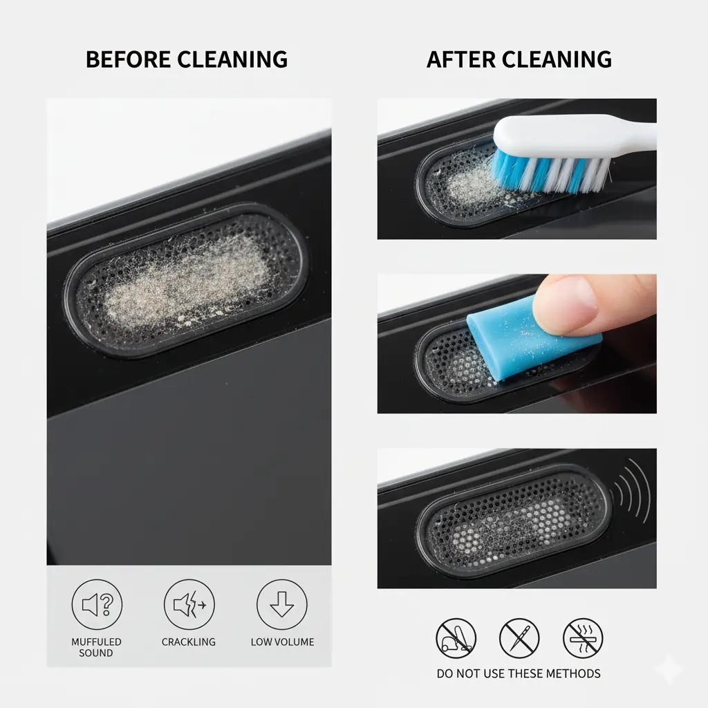 If debris is inside the speaker chamber, physical cleaning isn’t enough.