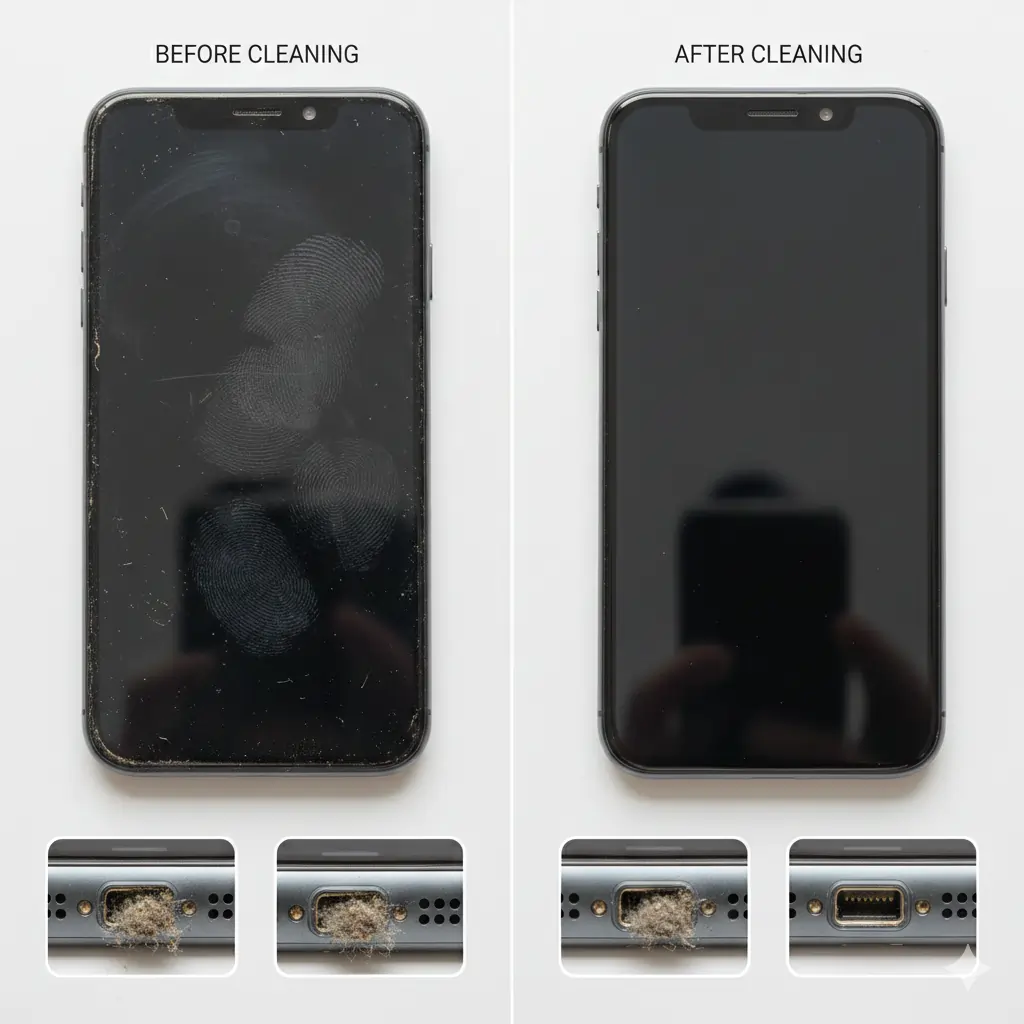 Our phones touch everything — hands, pockets, dusty tables, kitchen counters, even gym equipment. Over time, oils, bacteria, dust, and tiny debris collect inside charging ports, speakers, cases, and buttons.