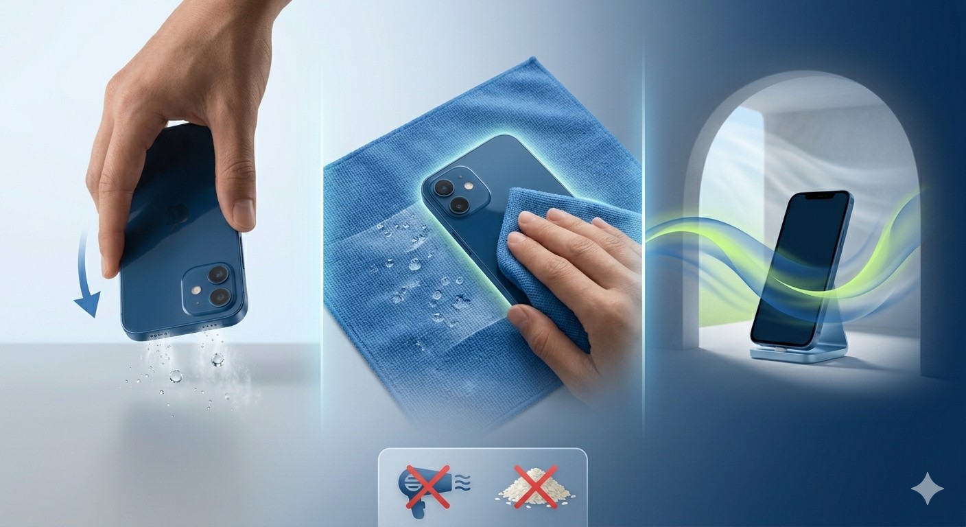 ⚠️ Avoid rice myths and heat sources like hair dryers—they can damage internal components.